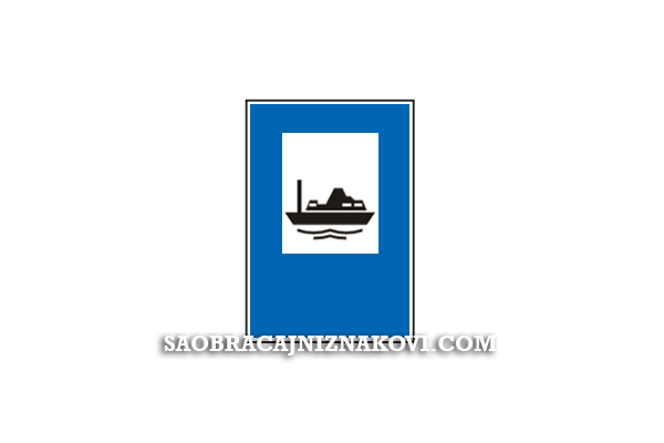 Znak "Trajekt - pristanište" označava blizinu brodske luke i pristaništa za brodove koji prevoze vozila.