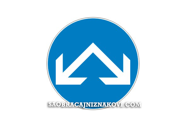 Znak "Obavezno obilaženje" označava kolnik ili dio kolnika kojim se vozila moraju kretati pri obilaženju pješačkih otoka, otoka za usmjeravanje prometa i drugih objekata na kolniku.