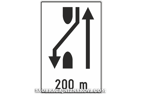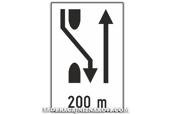 Znak "Predznak za preusmjeravanje saobraćaja na putevima s odvojenim kolovoznim trakama" obavješćuje i označava smjer te način preusmjeravanja prometa.