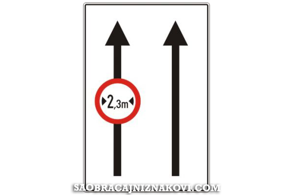 Znak "Prometna traka namijenjena određenoj vrsti vozila" označava broj i namjenu prometne trake, kad je zbog održavanja propusne moći ceste u području izvođenja radova, kratkotrajnog ograničenja ili oštećenja kolnika, promet uređen na takav način da se prometne trake namjenjuju određenoj vrsti vozila.