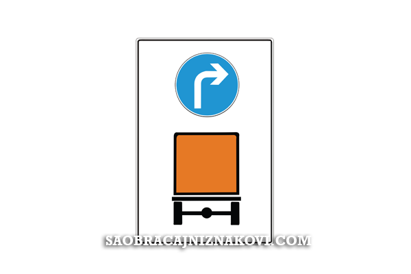 Znak "Opasan smjer za vozila koja prevoze opasne tvari" označava obavezan smjer za vozila koja prevoze opasan teret.