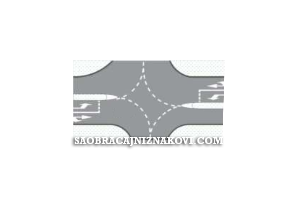 "Isprekidana uzdužna crta - Kratka" služi kao razdjelna crta na prilaznim krakovima raskrižja, kao crta vodilja u samom raskrižju i za odvajanje prometnih traka za vozila javnog prijevoza putnika.