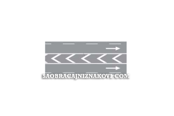 "Polja za usmjeravanje prometa - Između dva prometna traka sa istim smjerovima" označava polje za usmjeravanje prometa između dvije prometne trake sa istim smjerovima.