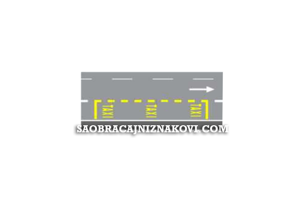 "Prometne površine za posebne namjene - Stajalište taxi vozila ili "shuttle" prijevoza" služe za obilježavanje mjesta namijenjenih isključivo za taxi vozila ili vozila "shuttle" prijevoza.