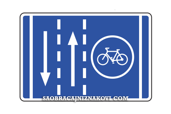 Znak "Saobraćajna traka za bicikliste" označava saobraćajnu traku koja je namenjena za kretanje biciklista.