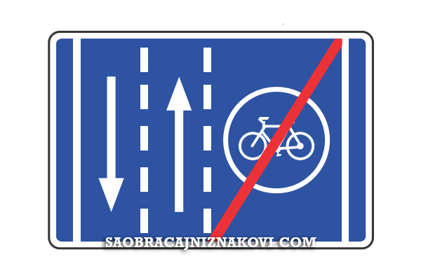 Znak "Završetak saobraćajne trake za bicikliste" označava završetak saobraćajne trake koja je namenjena za kretanje biciklista.