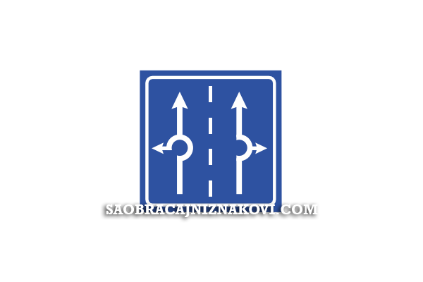 Znak "Prestrojavanje vozila" označava prethodno obaveštenje radi prestrojavanja na raskrsnici na putevima sa više saobraćajnih traka, odnosno označava prethodno obaveštenje radi prestrojavanja na raskrsnici sa kružnim tokom saobraćaja.